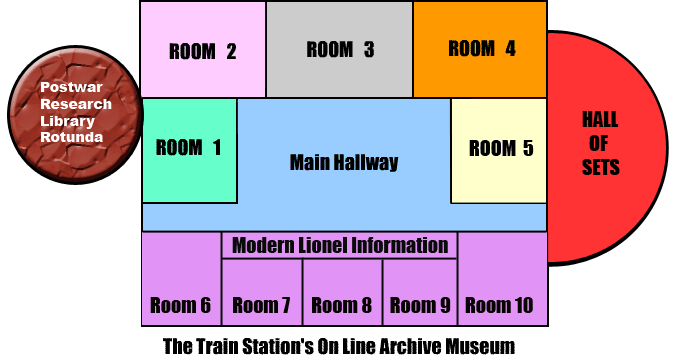 | A place to view exciting items from Lionel's History. Many of the items are not for sale. Some were photographed in our store, some at other locations. Enjoy visiting the various rooms of our Archive Museum. PLEASE NOTE: The Archives are a work in progress, and we will be adding items and more complete descriptions as we progress. All Rooms are now open. including the new Postwar Research Rotunda. The Archives are always a "Work in Progress!" Click on a Room Below to get started: |
